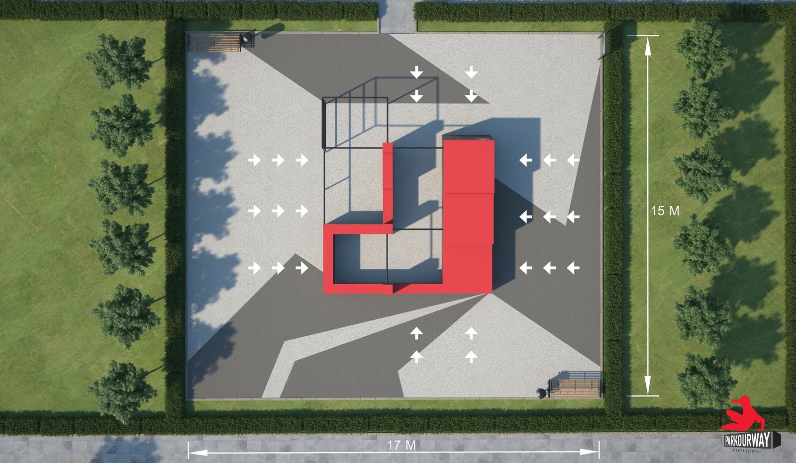 Проект паркур площадки предусматривает прохождение препятствия в 10-ти вариациях.