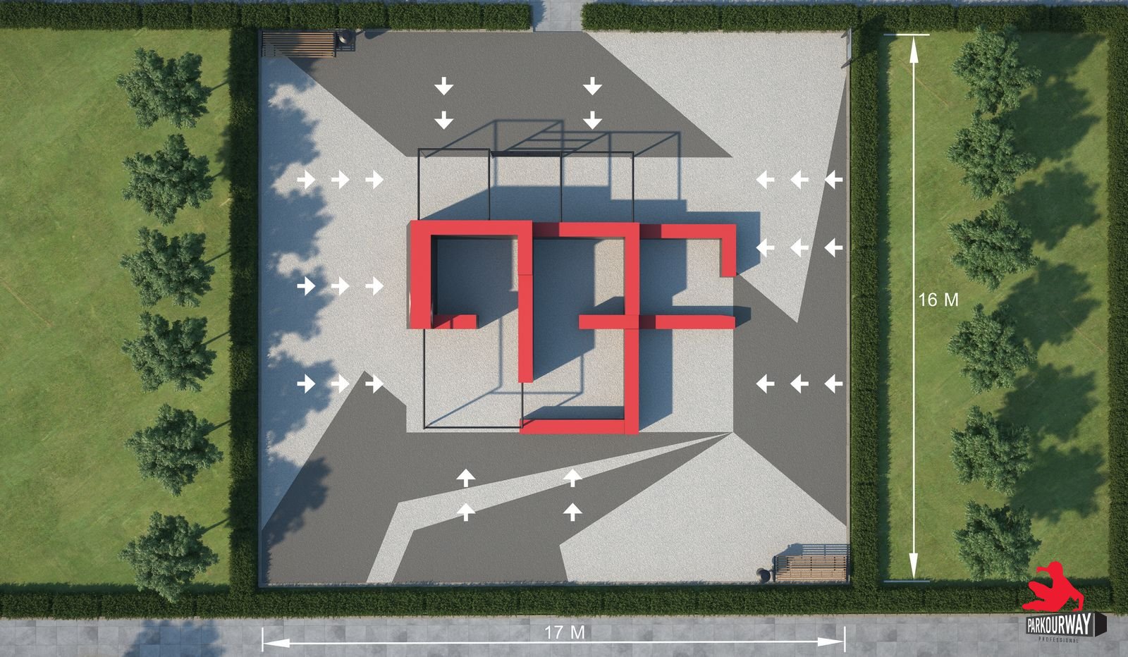 Проект паркур площадки предусматривает прохождение препятствия в 10-ти вариациях.