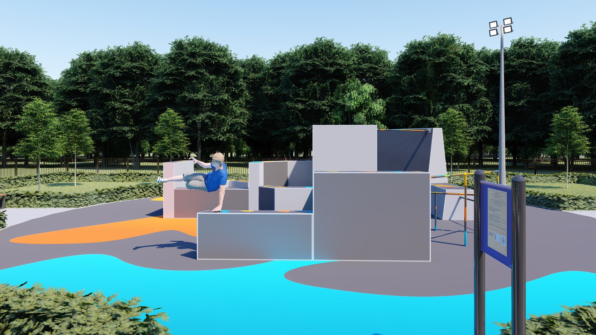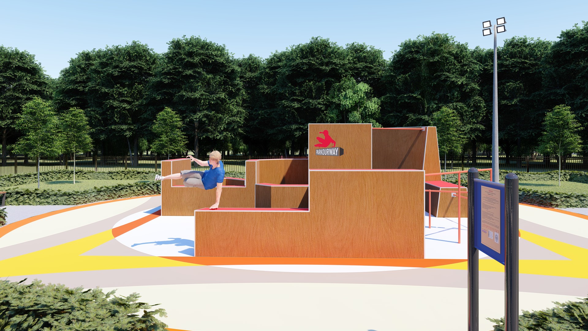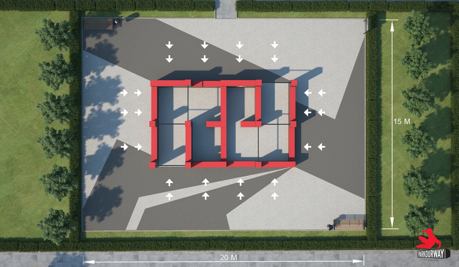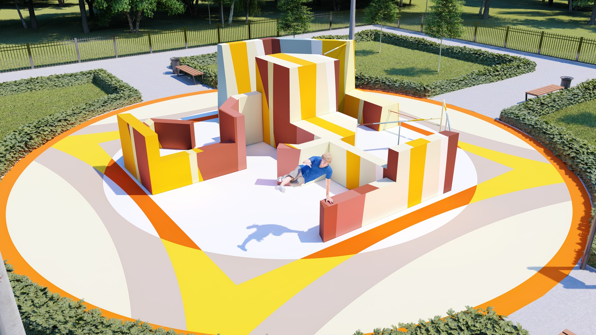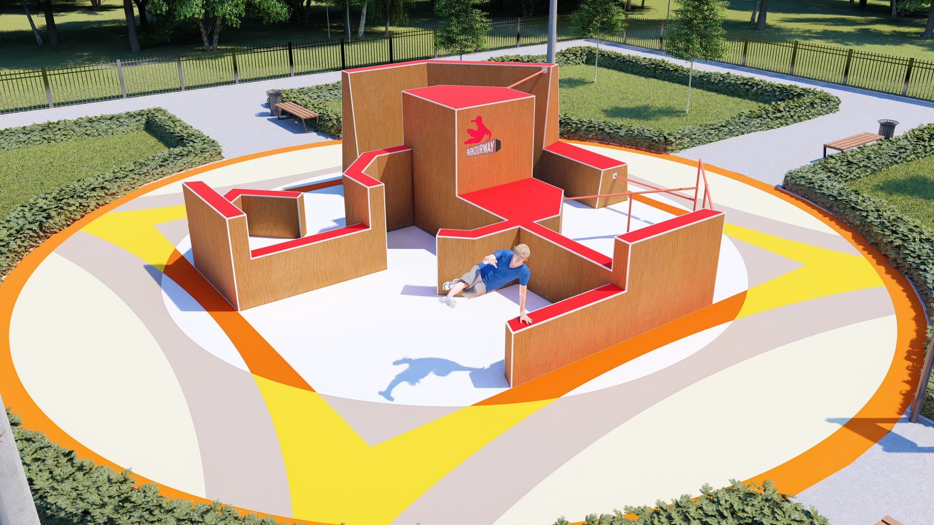 Проект паркур площадки предусматривает прохождение препятствия в 14-ти вариациях.