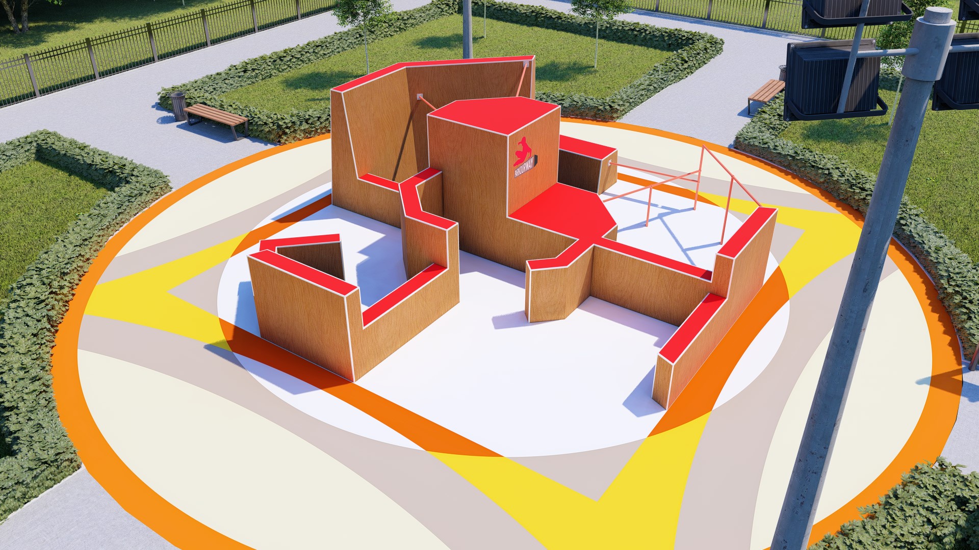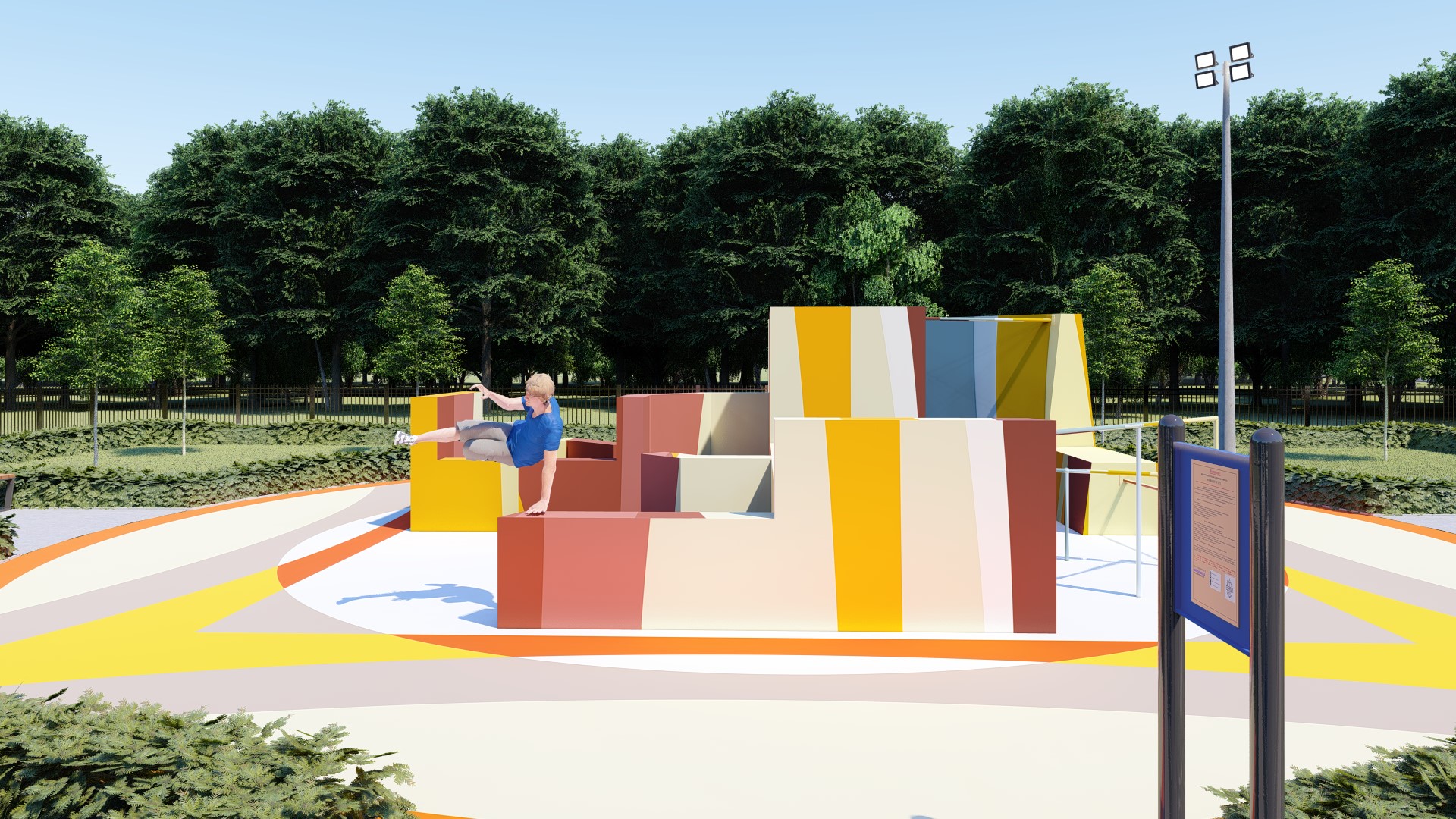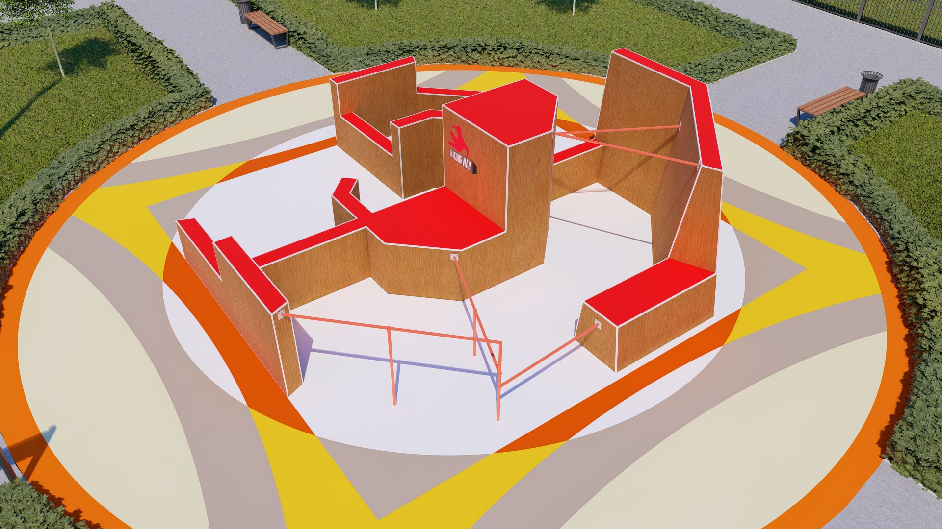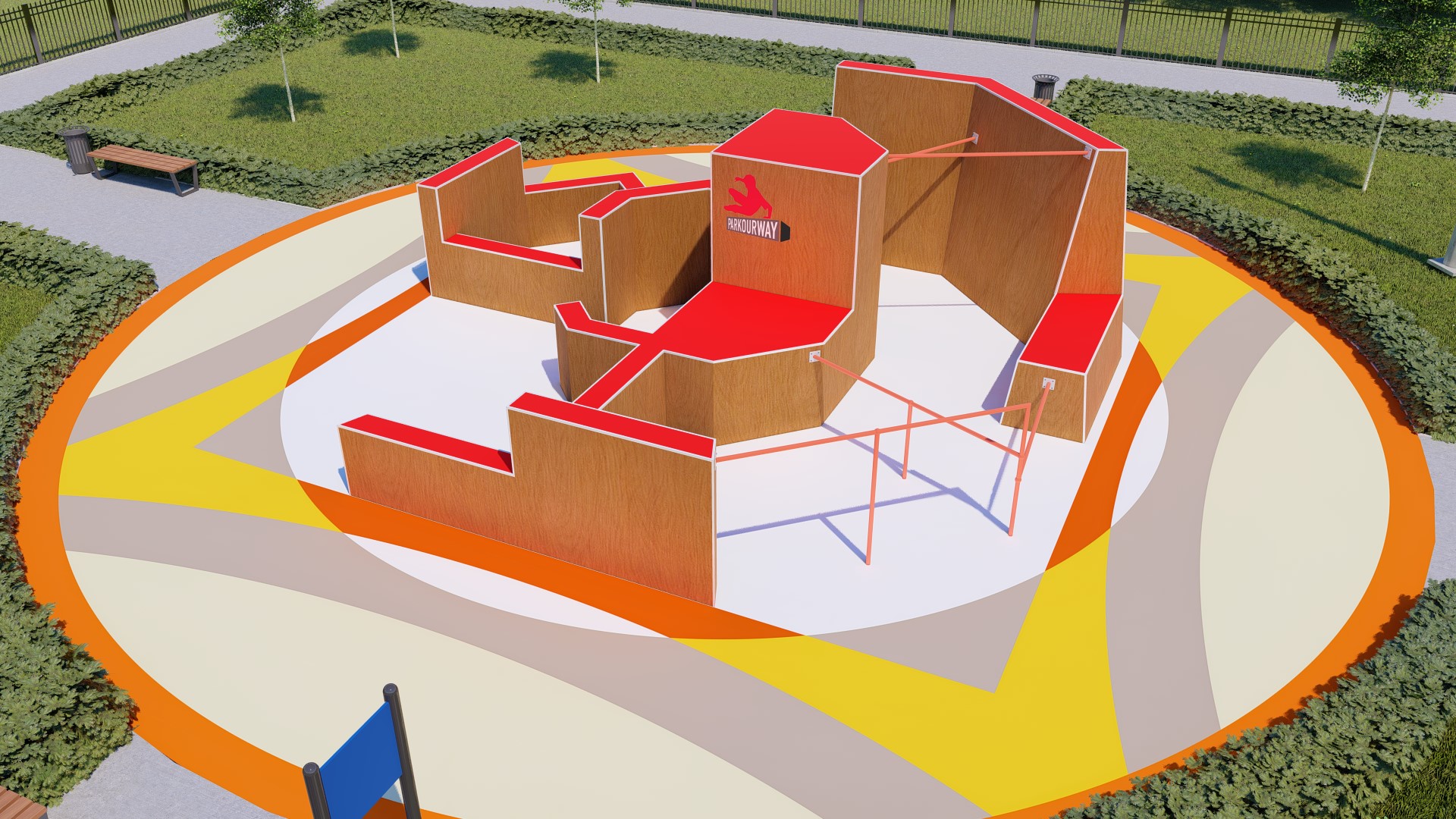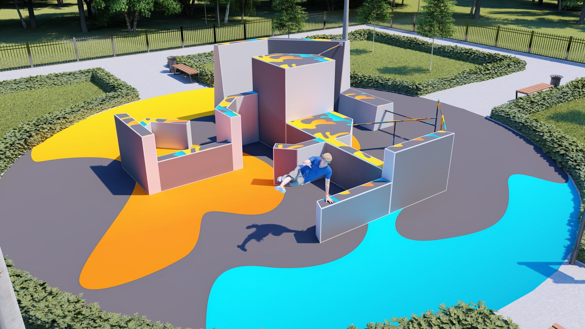 Проект паркур площадки предусматривает прохождение препятствия в 14-ти вариациях.