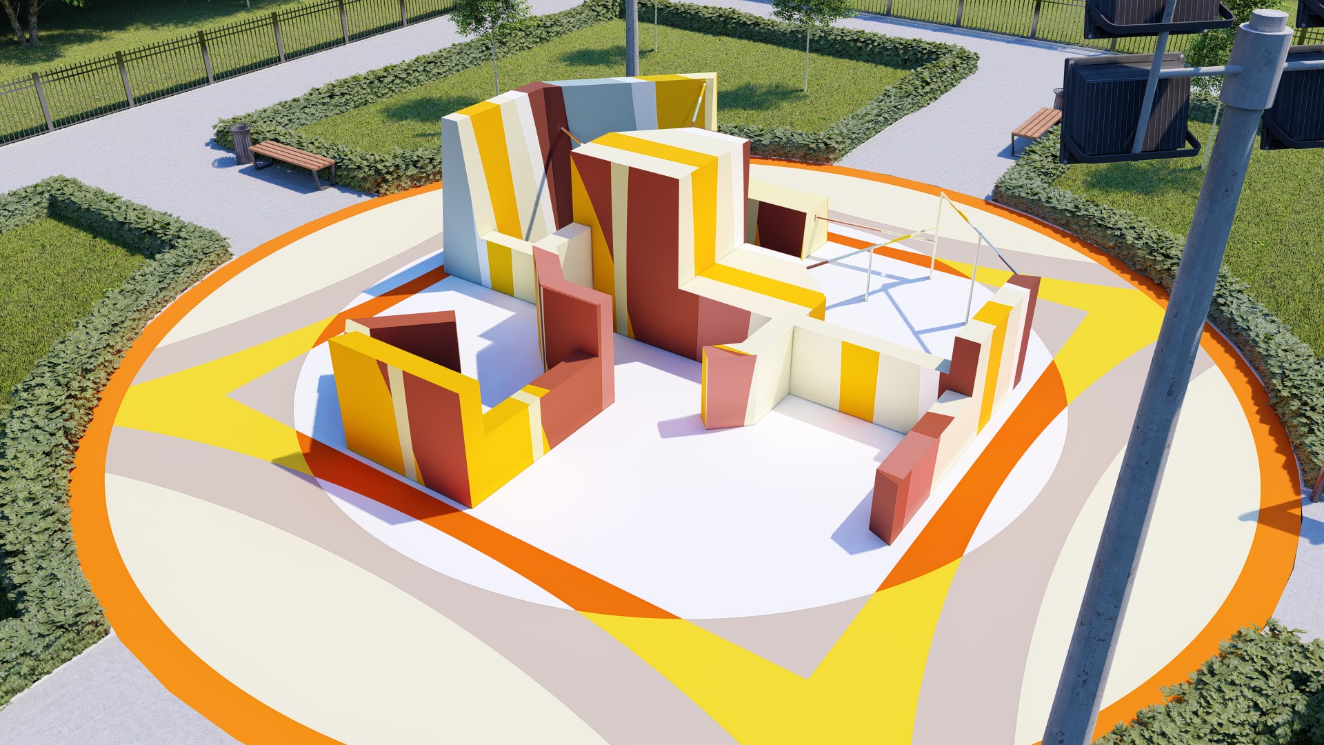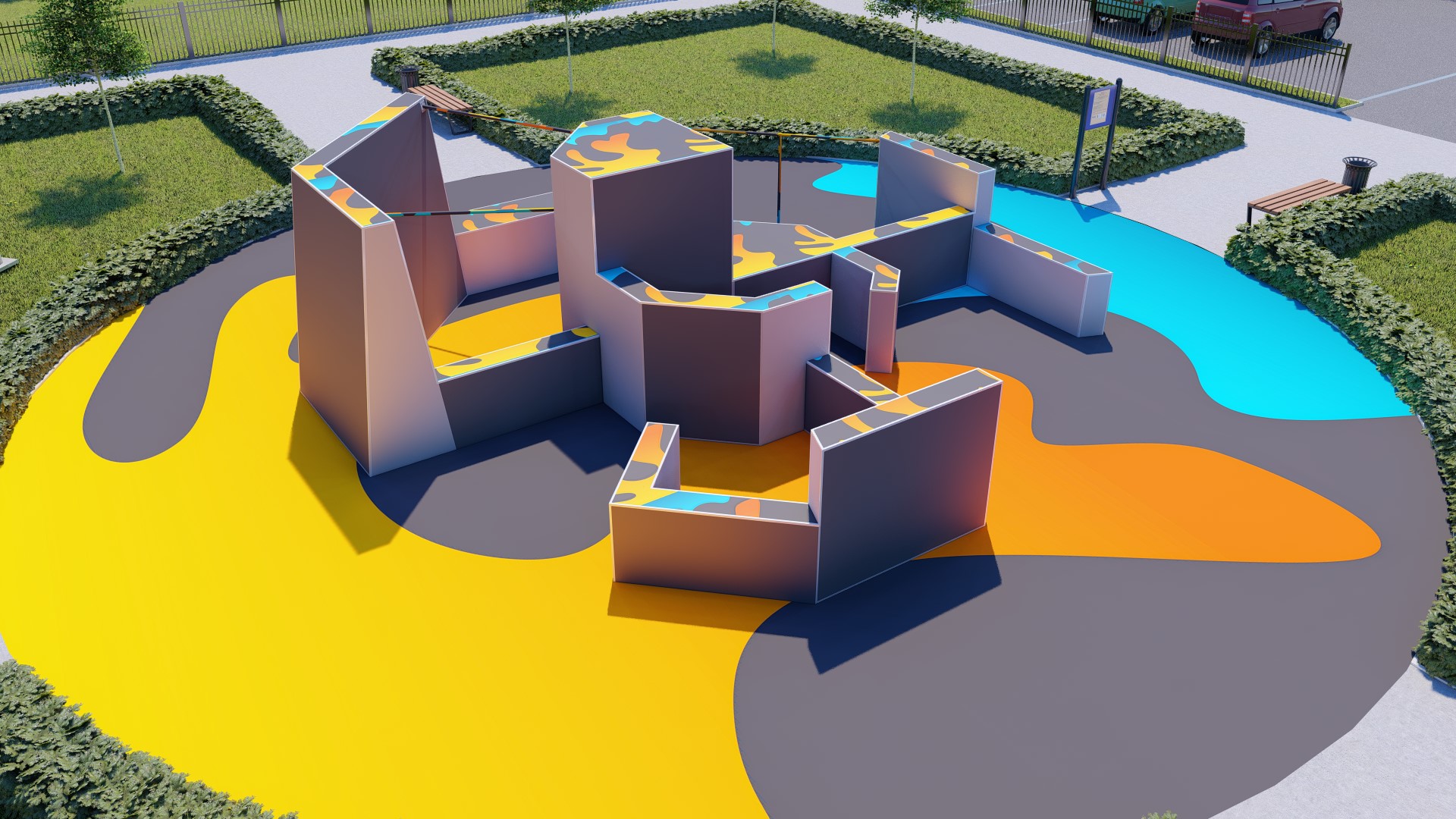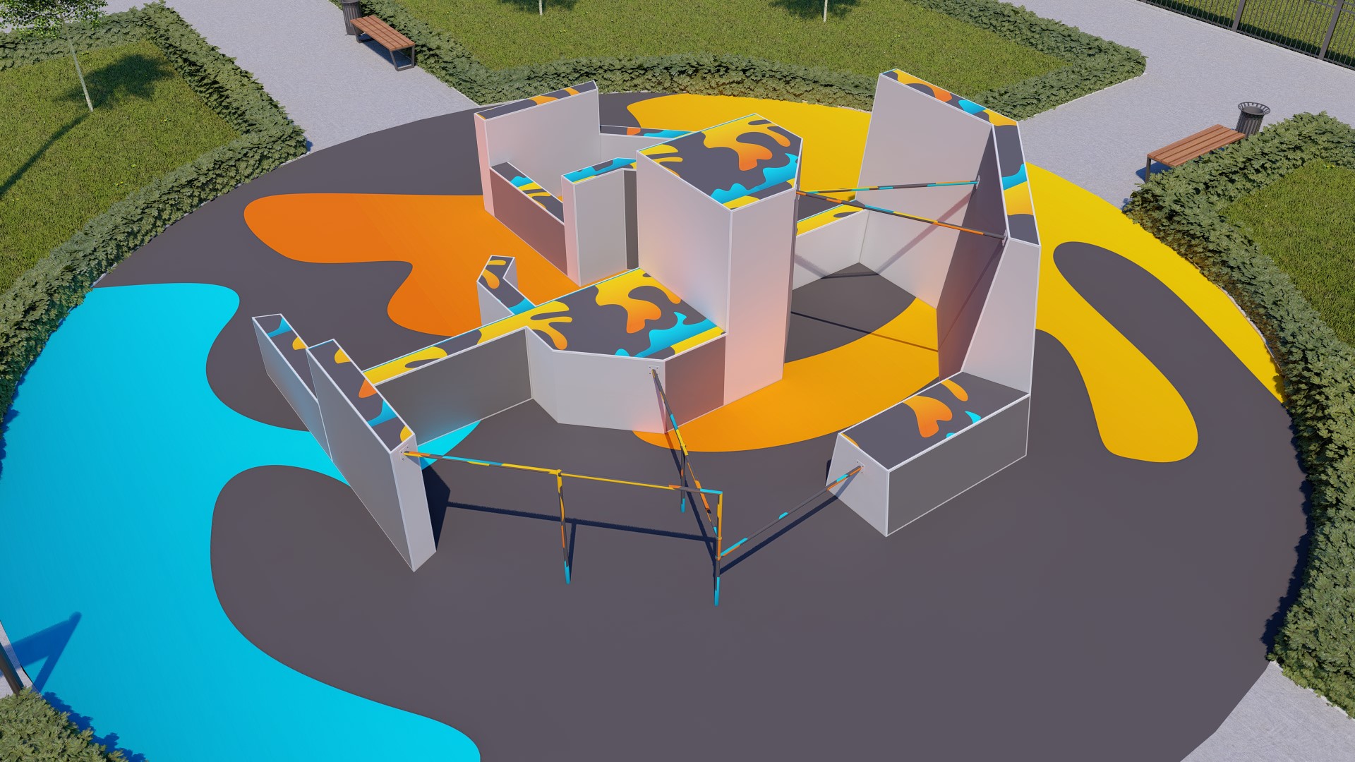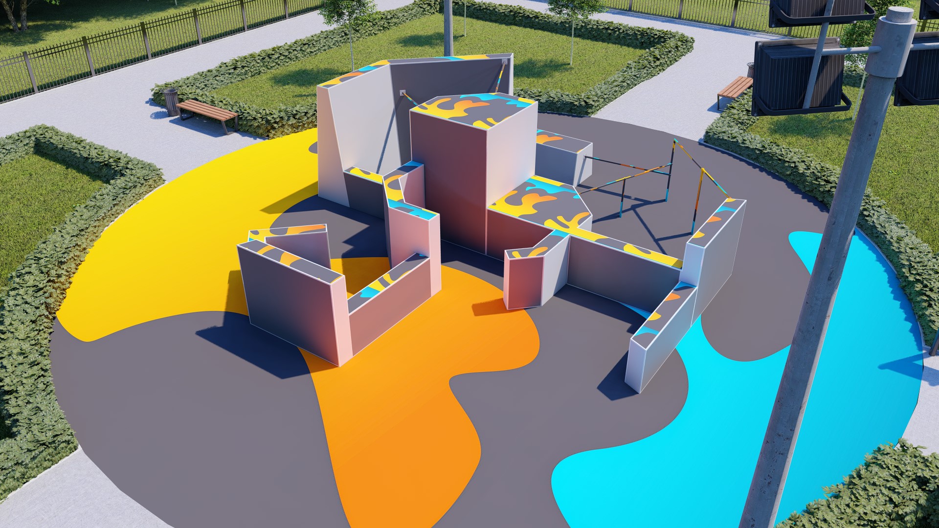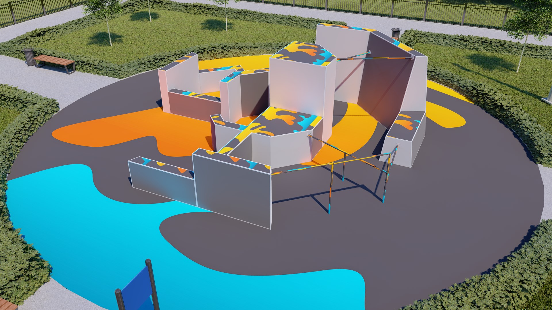 Проект паркур площадки предусматривает прохождение препятствия в 14-ти вариациях.