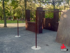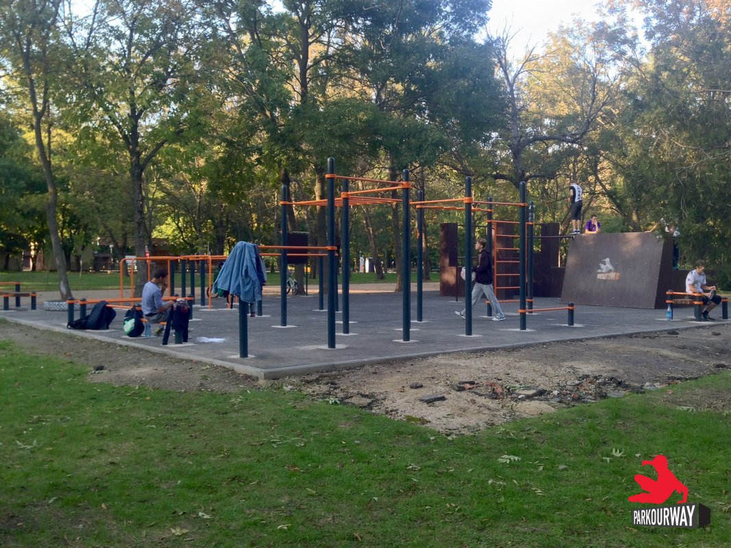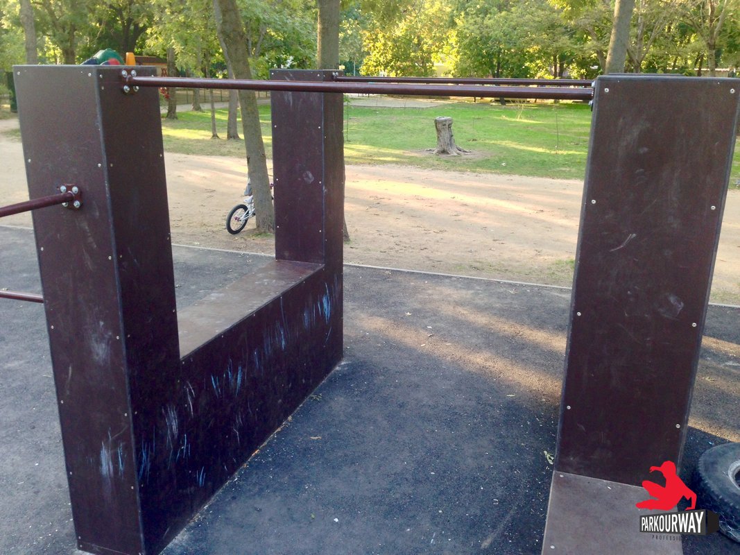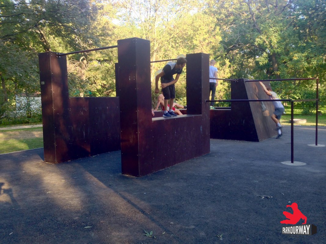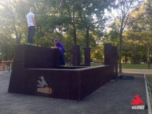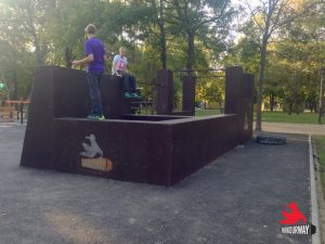 Паркур парк располагается на единой площадке вместе с оборудованием для воркаута установленным компанией «Workoutcity» (более подробно на workoutcity.ru).